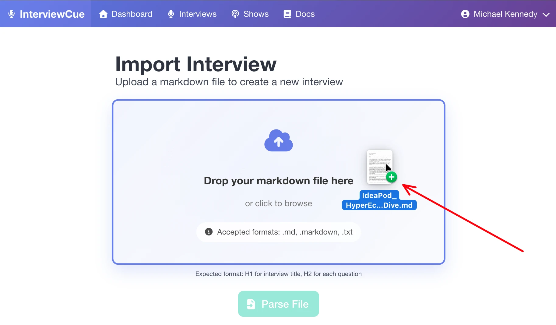 - Import into InterviewCue -- visit Interviews > Import, drag your