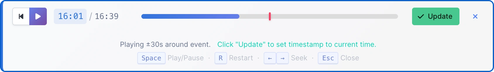 - 🎧 Audio Scrubbing Interface - Visual timeline with audio playback for precise timestamp adjustment